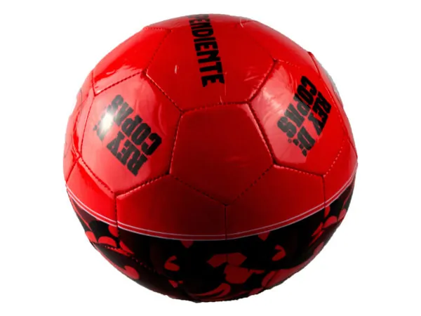 Featuring a glossy red and black aesthetic, it stands out on the field. Made from durable stitched plastic, this ball can withstand tough play while maintaining its vibrant appearance. Recommended pressure is 4-6 PSI, ensuring optimal performance. The ball measures approximately 8.5 inches in diameter and comes deflated, packaged in a convenient poly bag.