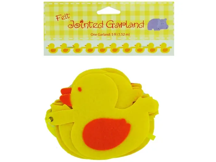 This delightful rubber ducky garland features adorable felt jointed ducks in vibrant shades of yellow and orange. Perfect for baby showers, birthday parties, or nursery decor, each charming banner is made from high-quality felt and stretches an impressive 5 feet long.