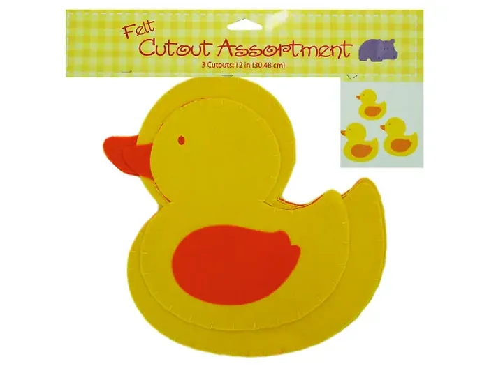 This vibrant set of 3 felt Yellow Rubber Ducky cutouts is perfect for inspiring creativity in kids. With their bright colors and fun textures, these cutouts are ideal for school craft projects, group activities, and themed baby showers.