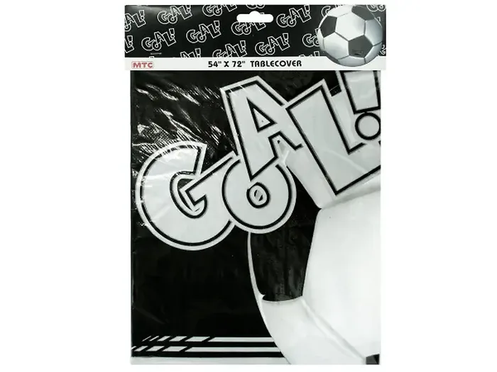 Enhance your soccer-themed party with this vibrant tablecover featuring the word 'Goal' printed alongside playful soccer balls. Measuring 54 inches by 72 inches, this durable plastic tablecover is perfect for protecting your table while adding a fun touch to your decor.