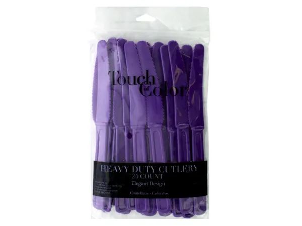 Enhance your dining experience with our 24 count red disposable plastic knives. Perfect for parties, picnics, and barbecues, these sturdy knives blend style and convenience. Made from high-quality plastic, they are designed for ease of use and can handle a variety of foods.