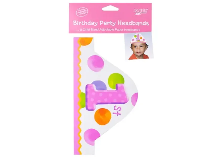 8 pk child sized adjustable paper headbands 1st dots girl