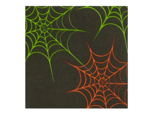 Make your Halloween celebration extra special with the Colorful Halloween Spooky Spider Napkins Set. This set includes 18 high-quality 2-ply napkins, each measuring 9-4/5" x 9-3/4". The playful design features a vibrant spider with a silly grin, set against a striking purple spider web background. An eye-catching orange, green, and black striped border adds to the festive charm, making these napkins a delightful addition to your Halloween party table.
