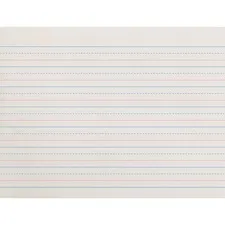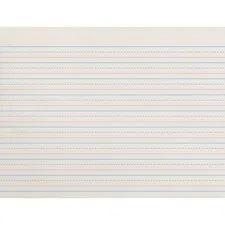 Letter-size practice paper is perfect for honing handwriting skills. Clear, white 30 lb. newsprint has light blue ruling on both sides. Sheets are ruled 1/2" the long way, and 1/4" dotted center line serves as a guide for controlled writing. Paper is recyclable.