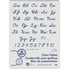 Chart tablet is designed to assist in classroom demonstration for various handwriting styles and programs. White bond paper is two-hole punched and bound at the top with glue. It is 1" ruled the short way on both sides of the sheet. Tablet is recyclable.