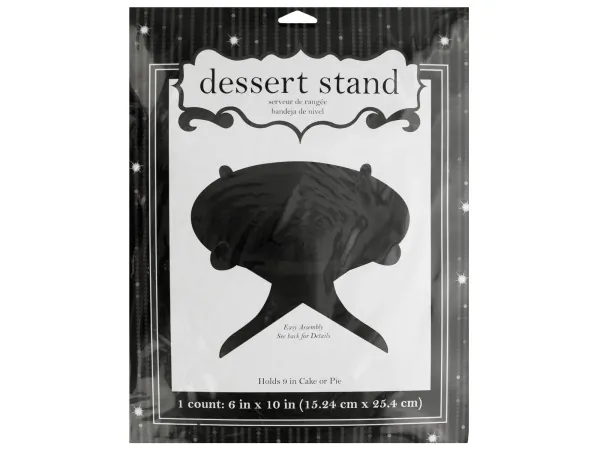 Designed to hold a 9" cake or pie, it measures approximately 6" in height and 10" in diameter. Easy assembly instructions are included, and it comes packaged in a poly bag with a header card for convenient storage.