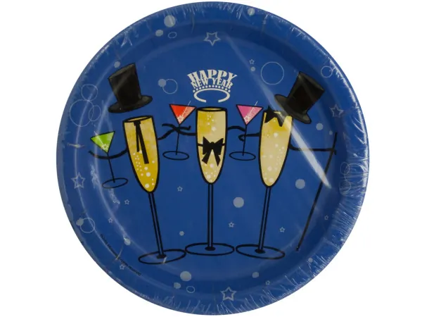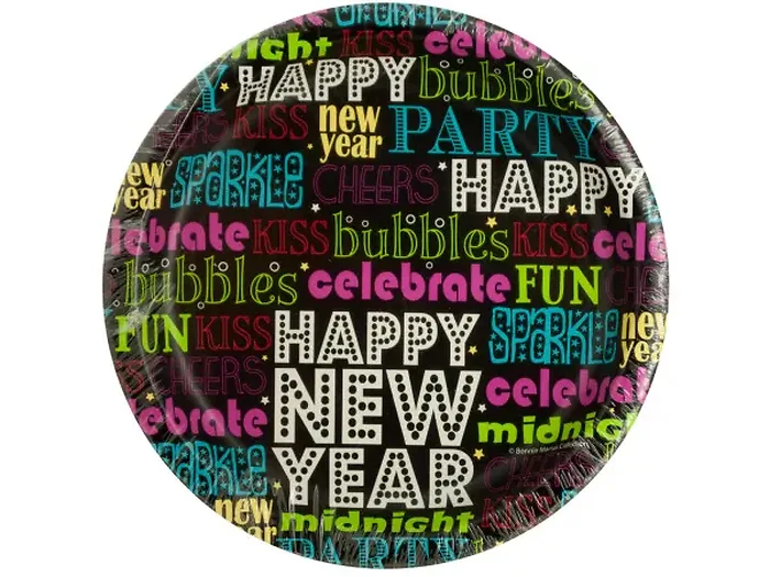 Celebrate the New Year in style with our vibrant set of Happy New Year Party Plates. This 8-piece set includes durable round cardboard plates featuring a cheerful 'Happy New Year' message surrounded by colorful festive graphics. Perfect for serving appetizers, desserts, or dinner during your New Year’s Eve gathering!