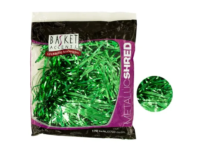 Each package contains 170 cubic inches of vibrant green metallic strips, designed to create beautiful displays. Whether you're preparing for a birthday, wedding, or holiday celebration, this gift shred will elevate your gifts to the next level.