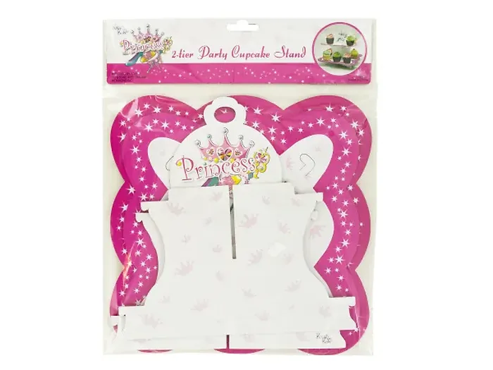 Make your celebration magical with this Delightful 2 Tier Cupcake Stand designed specifically for princess-themed parties. Crafted from sturdy cardboard, this stand features a vibrant and enchanting princess design that will charm all your guests. It's easy to assemble and perfect for showcasing cupcakes, treats, and snacks at your next event.