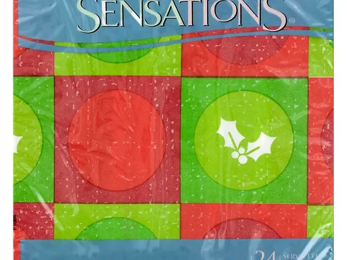 Get ready for the festive season with these Jolly Holly Check Holiday Beverage Napkins. This set includes 24 high-quality 2-ply napkins, featuring two delightful designs: a classic red and green checker pattern adorned with holly leaves, and cheerful red, white, and green stripes. Perfect for any holiday gathering or party, each napkin measures approximately 9 7/8" x 9 7/8" and comes conveniently shrink wrapped for easy storage.