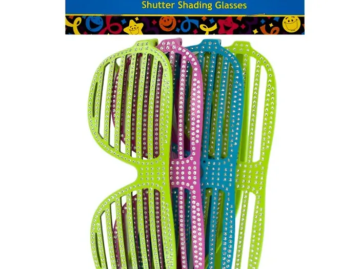 • Includes 4 colorful pairs of shutter shade sunglasses