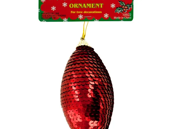 Add a touch of elegance to your holiday decor with this stunning Gold Sequined Christmas Ornament. Featuring an exquisite oval shape adorned with shimmering sequins, sparkling beads, and glitter, this ornament is perfect for enhancing your Christmas tree.