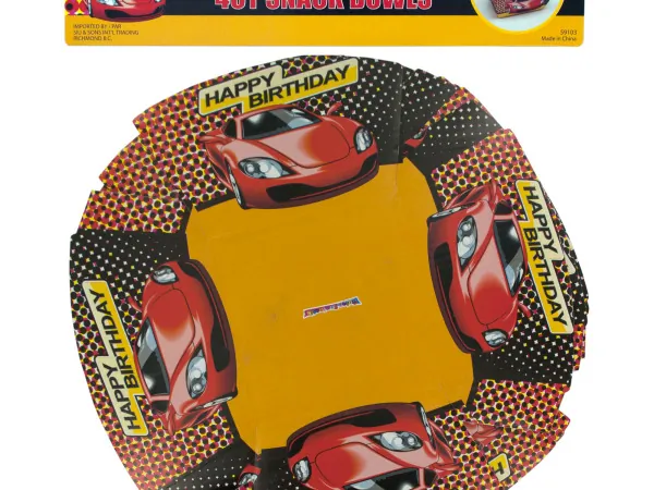 Serve snacks in style with this enchanting 4-piece Princess Themed Foldable Snack Bowls Set. Each durable cardboard bowl showcases a delightful princess crown and jewel design on the exterior, complemented by a vibrant pink star pattern on the interior and base. These bowls are designed for convenience; they easily fold up and can be assembled using self-adhesive strips. Ideal for birthday parties or themed events, they come neatly packaged in a poly bag with a header card for easy display.