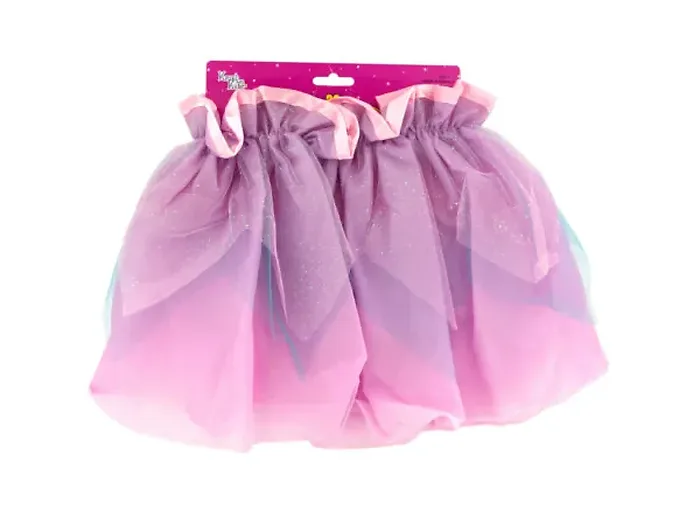 This Elegant Girls Tutu Skirt is designed for parties and dress-up occasions. Featuring a stunning combination of pink and light blue layers, this tutu is made from soft netting and polyester, ensuring comfort and style. The elastic waistband provides a snug fit, while the zigzag pointed edges and longer bottom layer add a touch of flair. Finished with a sparkling glitter top layer, it's perfect for little princesses aged 3 and up. Comes beautifully packaged for presentation.
