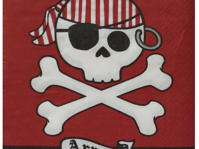 Celebrate your little one's birthday with these fun and festive Pirate Party Arrgh Lunch Napkins! This set includes 16 soft quality red tissue napkins that are 3-ply for extra durability. Each napkin features a whimsical pirate design with the word 'Arrgh' displayed on a banner, making them perfect for any pirate-themed party.
