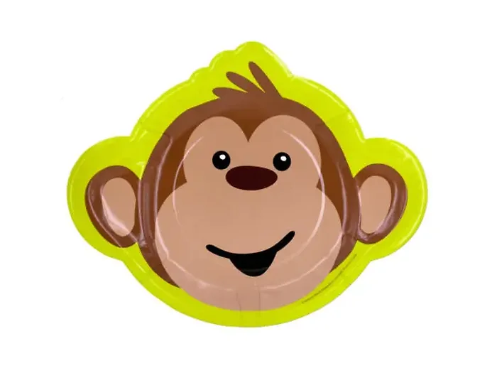Make your child's party unforgettable with the Monkeyin' Around Kids' Party Plates Set. This vibrant collection of 8 plates features an adorable monkey design, perfect for any jungle-themed celebration. Each plate has a playful monkey face print surrounded by a lively lime green border, adding a cheerful touch to your table decor.