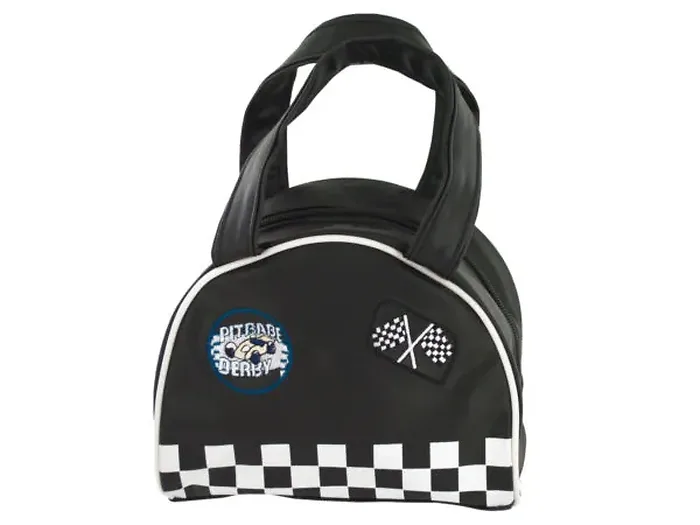 Elevate your style with the Sporty Black Racer Handbag, designed to add a fun and playful touch to any outfit. Crafted from soft black vegan leather, this handbag showcases vibrant embroidered race flags and race car patches that celebrate automotive passion. The bottom features a stylish black and white checkered pattern complemented by chic white piping, making it a standout accessory.
