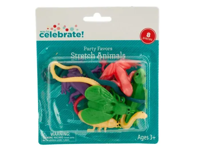 Add fun and excitement to your next party with our Assorted Stretchable Animal Party Favor Set! This set includes a variety of eight animals such as snakes, lizards, insects, and amphibians that are made from super stretchy, soft plastic. Perfect for party decorations, these toys are entertaining for kids aged 3 and up.