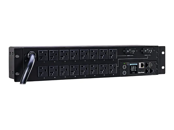 This 30A Monitored Power Distribution Unit (PDU) is designed for reliable power distribution in data centers and IT applications. Featuring a sturdy 2U form factor, it includes 16 NEMA 5-20R outlets for efficient connectivity.