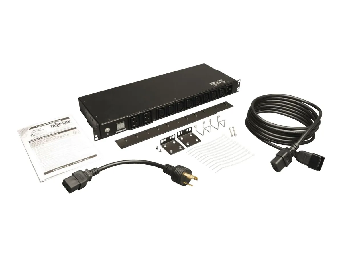 Tripp Lite PDUMNH20HVBrand NewIncludes 2 Year WarrantyProduct # PDUMNH20HVPDUMNH20HV Monitored 1U horizontal rack PDU supports 20A peak capacity at 208/240V 60Hz in North America and 230V 50Hz International countries (agency de-rated to 16 amps continuous). Includes C20 inlet for use with user supplied C19 input cabling, detachable C19 to C20 cable with L6-20P adapter for North America use and 8 C13 outlets. Visual and remote current monitoring tracks real time output current level. Supports 1U horizontal rackmount installation with included mounting brackets. Included cord retention brackets keep vital network equipment plugged in and continuously powered. Monitored PDU systems support real-time remote monitoring via secure web, SNMP or Telnet interface and custom notification of user-specified remote conditions via email and SNMP trap. PDU power consumption in amps is displayed locally via front panel lighted digital display and can be monitored remotely to warn of potential overloads before critical IT mains breakers become overloaded. PDUMNH20HV Features: Product Series: Monitored Input Receptacles: NEMA L6-20P Input Receptacles: IEC 60320 C20 Output Receptacles: 8 x IEC 60320 C13 Input Voltage: 240 V AC Output Voltage: 208 V AC Output Voltage: 230 V AC Output Voltage: 240 V AC Management: Protocols:HTTPHTTPSSMTPSNMPv1SNMPv2TelnetFTPDHCPBOOTPNTP Form Factor: Horizontal Rackmount Form Factor: Wall Mountable Rack Height: 1U Green Compliant: Yes Green Compliance Certificate/Authority: RoHS