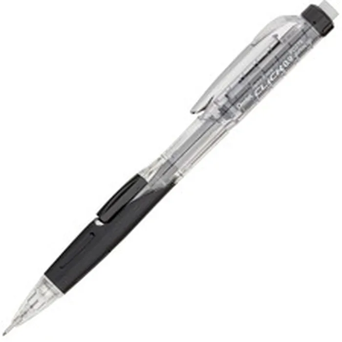 Mechanical pencil features a tinted barrel to let you monitor lead supply at a glance. Extra-long, nonabrasive, twist-up E10 eraser comes in handy when making corrections. Smooth, latex-free Comfort-Zone grip provides extended writing comfort. Stylish, metal pocket clip is convenient when going about your day-to-day routine. Convenient side button allows the 0.9mm lead to advance effortlessly without changing hand position. HB lead inside is equivalent to a No. 2 wooden pencil and scans on standardized tests. Twist Erase Click Mechanical Pencil is refillable with Pentel Super Hi-Polymer Lead and E10 jumbo refill eraser.