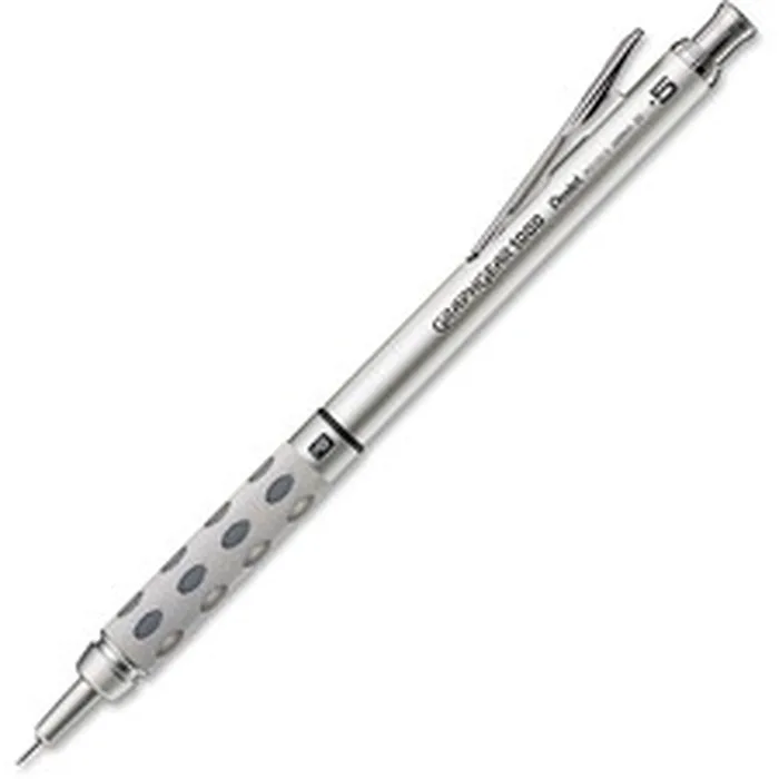 GraphGear 1000 Drafting Pencil is the superior drafting pencil for professionals and writing enthusiasts. Click the pencil to reveal an extra-long 4mm tip. Click the pocket clip to release the heavy spring mechanism and retract the tip. Finely chiseled metallic grip is inlaid with soft latex-free pads to cushion fingertips. Pentel Super Hi-Polymer lead is equivalent to a No. 2 wood-case pencil, guaranteed to scan on tests, resists breaking and never needs sharpening. Pencil is refillable with Pentel Super Hi-Polymer HB lead and Z2-1 eraser.