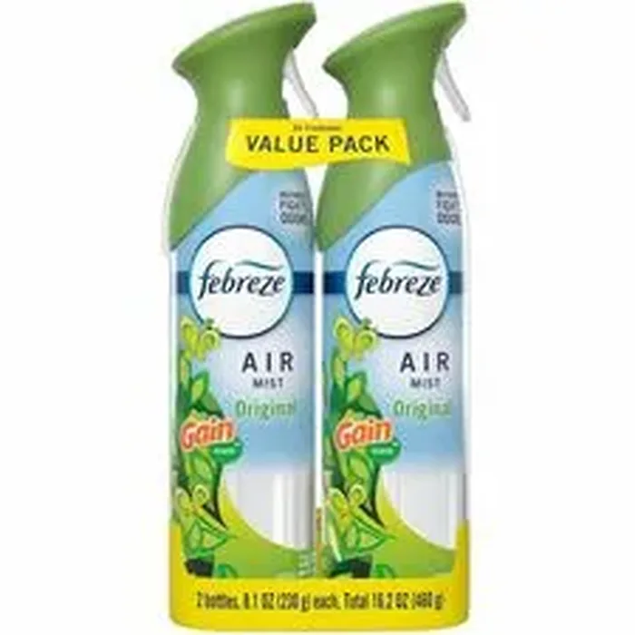 In even the cleanest homes, everyday odors are inevitable, and those odors can affect the enjoyment of being in your home. Febreze Air Mist is the go-to room deodorizer for tackling those unwanted smells. It's designed to instantly restore any space with the just-cleaned freshness you love. Made with powerful odor fighters, you can spray away stink confidently, whether you're in the kitchen, bathroom, garage, living room or any room where bad smells happen. With rich amber, invigorating greens and sweet florals, the freshness of Gain Original Scent is a treat to your nose... without doing a single load of laundry. It's a fresh pick-me-up that won't let you down and delivers up to 6 hours of ahh-mazing scent. This air freshener has 100-percent natural propellant and a nozzle that delivers full sprays to the last drop, so nothing goes to waste. Next time odors bring you down, grab the odor-fighting power and long-lasting scent of Febreze Air Mist.