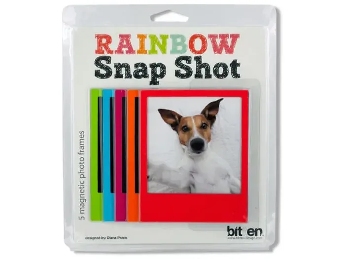Showcase your cherished memories with the Vibrant Magnetic Photo Frames Set. This 5-piece collection features instant camera-style magnetic frames in an array of bright colors, perfect for adding a pop of fun to any surface. Easily attach the frames to metal surfaces like your fridge, locker, or filing cabinet, and bring your favorite moments to life!