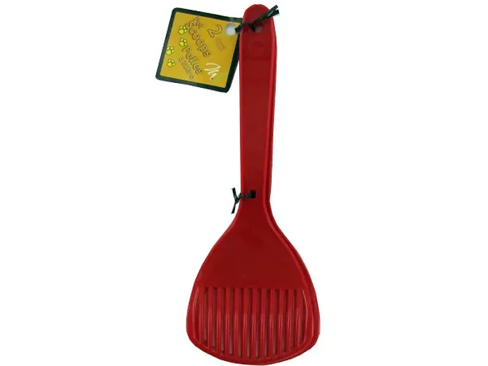 Keep your hands clean while cleaning up after your pet with this convenient set of two red pet scoops. Each scoop is designed to efficiently handle pet waste, making cleanup quick and hygienic.