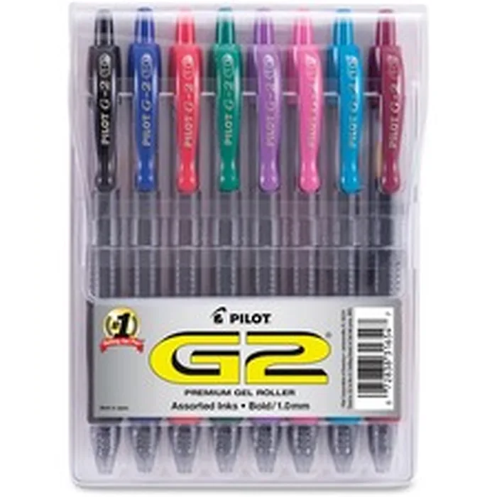 Pilot G2 8-pack Bold Gel Roller Pens - Bold Pen Point - 1 mm Pen Point Size - Retractable - Black, Blue, Burgundy, Green, Pink, Purple, Red, Teal Gel-based Ink - Clear Barrel - 8 / Pack
