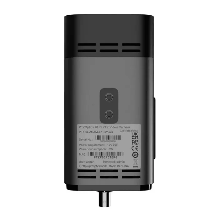 PTZOptics Studio 4K Camera with 12X Zoom & Dual Outputs