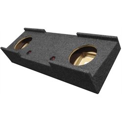 The **Q-Power 12"** Q-Bomb subwoofer enclosure is custom made for GMC and Chevy Ext Cab trucks, model year 1999 to 2006. This enclosure is designed to fit underneath the rear seats and boasts .65 cubic feet of air space.The **Q-Power 12"** Q-Bomb subwoofer box is made from solid 5/8" MDF construction and finished with a black bedliner spray for increased durability. Turn your ride into a sound machine with the help of the Q-Power 12" Subwoofer Enclosure! If you want the most output for your money, this is the way to go.PLEASE NOTE: This Sub Box is made to fire downward**We are an authorized Q-Power dealer**