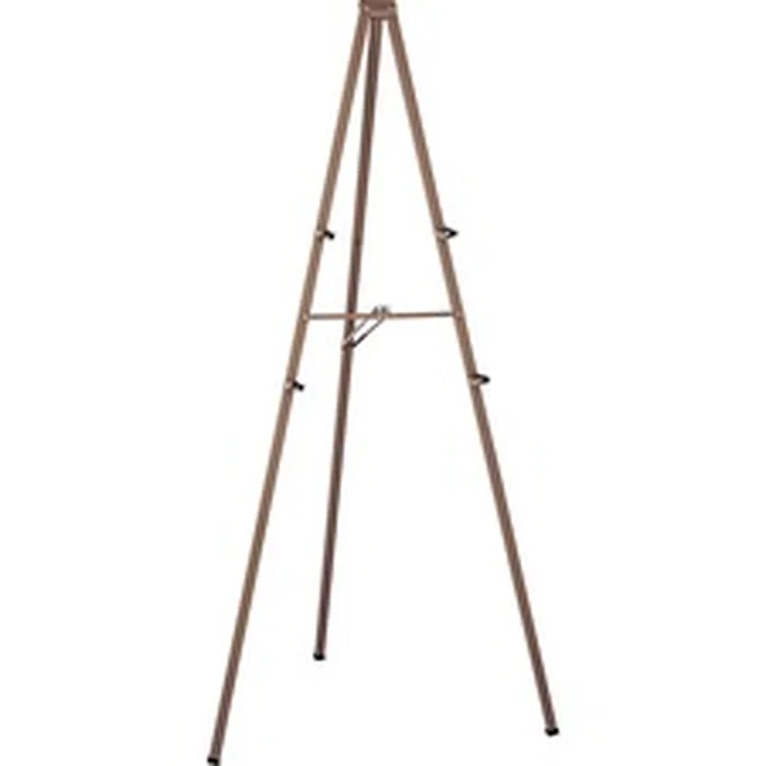 Tripod easel is made of sturdy steel with bronze finish. Locking mechanism secures legs. Included two sets of brackets fold down to hold presentation materials. Tripod easel folds to 1" wide x 4" deep x 72" high for easy transport or storage. Easel supports displays up to 8' x 4'.
