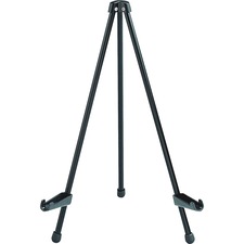 Portable easel sets up in seconds to stay in place. Fits neatly in briefcase. Trim, lightweight, black steel construction supports up to 5 lb. Use adjustable display holders to grip presentation materials. Easel is specially designed for displaying graphs, posters and lightweight boards. Easel weighs 3 lb.
