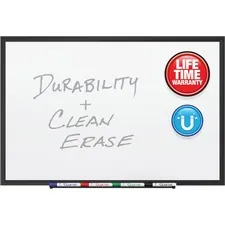Magnetic whiteboard features a DuraMax porcelain surface to allow ultra-smooth writing and prevent stains, ghosting, scratches or dents. Strong magnetic surface allows you to securely display papers on the surface with magnets (sold separately). Plus, its attractive frame complements most decor for use in virtually any setting. Included mounting hardware allows you to easily display the board for optimal placement. Attached marker tray provides convenient storage for the included dry-erase markers and magnets.