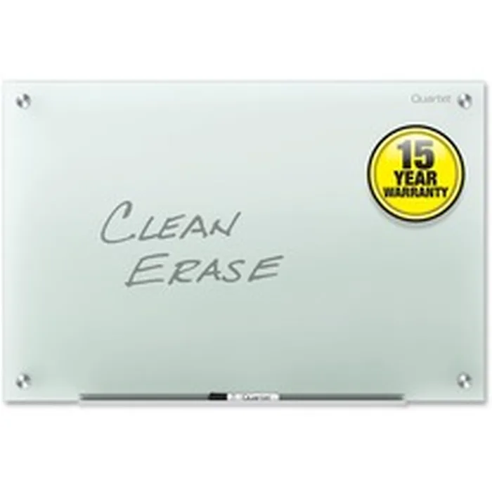 Ideal for heavy use in spaces with moderate traffic, this glass marker board provides long-term durability with a modern aesthetic appeal. Tempered glass surface will not stain, ghost, scratch or dent despite heavy use. Frosted glass board surface clearly displays any color dry-erase ink. Your dry-erase markers glide evenly over the board surface for smooth writing. Nonabsorbent glass is easy to keep clean with Quartet whiteboard cleaning supplies (sold separately). Frameless board is easy to install with included, pass-through mounting hardware. Hang vertically or horizontally. Board includes one dry-erase marker.