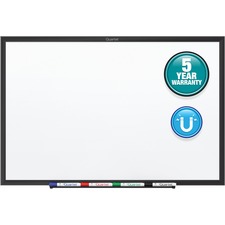 Upscale, magnetic dry-erase board offers a smooth, blank writing surface that is ideal for jotting down reminders, collaborating with others and keeping yourself organized. Ideal for moderate use in spaces with regular traffic. Magnetic quality with steel backing allows the surface of the board to double as a whiteboard and magnetic bulletin board. Clearly write messages using dry-erase markers and hang documents on the board using magnets. Silver finish, aluminum frame is sturdy and stylish. Attached marker tray provides convenient storage for accessories. Board also includes one dry-erase marker with a chisel tip and easy-to-use hardware for wall-mounting. To extend the life span of the board, clean the surface regularly with Quartet cleaning solutions.