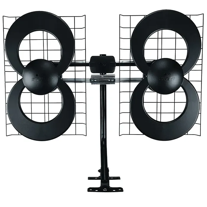 • Antennas Direct(R) ClearStream(R) 4 TV antenna - uses 4 patented loops to receive UHF signals 70+ miles away from broadcast towers and includes mast with pivoting base;• Powerful antenna measures 17.4 in. H x 27.8 in. W x 6 in. D; premium durable materials for use indoors, in an attic, or outdoors and ideal for suburban and rural areas;• Compatibility - NEXTGEN TV, 4K, 8K UHD, Full HD 1080p; no Internet required;• Each market has TV towers located in different areas; distance to the towers and obstructions like trees and your home's building materials will affect reception;• Reflectors add forward gain and focus antenna's power to protect incoming TV signal from interference that causes pixelation or complete loss of picture; 20-in. mast has pivoting base for installation on vertical or horizontal surfaces;• Includes ClearStream(R) 4 antenna, 2 reflectors, 20-in. mast with pivoting base, all-weather mounting hardware, adjustable mast clamp, instructions; lifetime manufacturer antenna warranty, 90-day accessory warranty ;• Based in St. Louis, MO., Antennas Direct(R) is dedicated to providing superior digital antennas and accessories engineered in the USA;