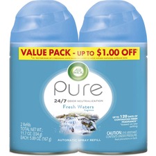 Apple cinnamon refill captures the warmth of sweet and spicy notes on a crisp autumn day for an enjoyable way to please your employees and guests. Odor-neutralizing spray tracks down unpleasant odors to eliminate foul smells and prevent them from returning. Long-lasting design provides up to 60 days of continuous fragrance when used on the low setting. Air freshener is perfect for use in hotels, healthcare facilities, nursing homes, office buildings, restrooms and more. Refill is designed for use with Air Wick Freshmatic automatic dispensers (sold separately).