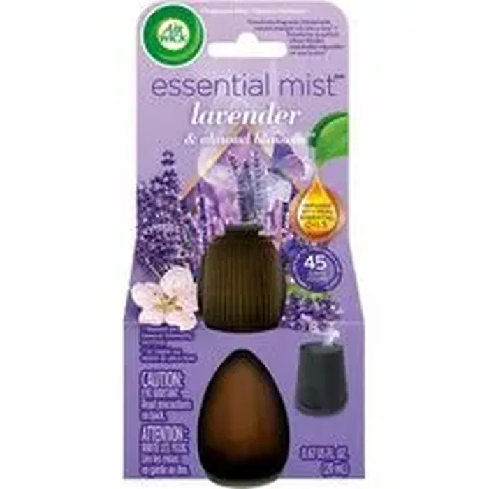 General InformationManufacturer:Reckitt Benckiser plc Manufacturer Part Number:98552 Manufacturer Website Address:http://www.reckitt.com Brand Name:Air Wick Product Line:Essential Mist Product Name:Essential Mist Scented Diffuser Oil Refill Marketing Information:Diffuser refill delivers a gentle, fragrant mist to surround you with the welcoming scent of fresh, natural lavender and delicately sweet almond blossoms. Its long-lasting design provides up to 45 days of continuous fragrance when it's used on the low setting. Diffuser refill is perfect for living rooms, kitchens, office spaces and more. Refill is designed for the Air Wick Essential Mist Diffuser (sold separately). Packaged Quantity:1 Each Product Type:Air Freshener Refill
