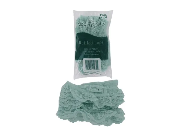 This beautiful peach-colored ruffled lace trim is perfect for a variety of crafting and sewing projects. With a slight stretch to the fabric, it's easy to manipulate and work with, making it ideal for miniatures, doll making, and other decorative uses.