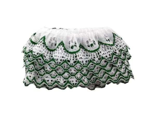 This beautiful dark green ruffled lace is perfect for adding a touch of elegance to your floral arrangements, crafts, and doll or miniature projects. It's also an excellent choice for various apparel designs, making it a versatile addition to your crafting supplies.