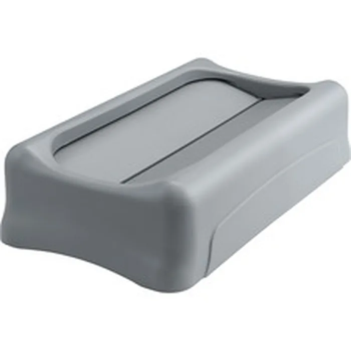 Swing lid is designed for use with Rubbermaid Slim Jim Containers. Lid provides easy access for trash disposal and then swings back to hide trash from public view. Counterbalanced design allows the lid to close by itself. Swing lid meets the sanitary needs of restaurants, snack areas and restrooms. The heavy-duty sturdy plastic is rustproof and easy to clean.