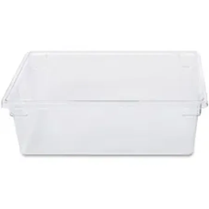 Organize your kitchen with this durable Food/Tote Box that is stackable, nestable and easy to clean. Food/tote box can reduce food spoilage costs. Date control panels on the clear box and lids (sold separately) allow easier inventory control to maintain safe food-handling practices. Labeling encourages proper food rotation. Box holds up to 12-1/2 gallons and accepts tight-fitting, snap-on lids to keep food fresh. Temperature range is from negative 50 degrees to 212 degrees Fahrenheit. Dishwasher-safe, freezer-safe box assists in complying with HACCP guidelines. It is made of FDA-compliant materials. Clear, break-resistant polycarbonate provides visibility, durability and stain-resistance. It is certified to NSF Std. No. 2 for safe food contact. Box stacks with other Rubbermaid Commercial Food/Tote Boxes and stays put with an interlocking ridge system.