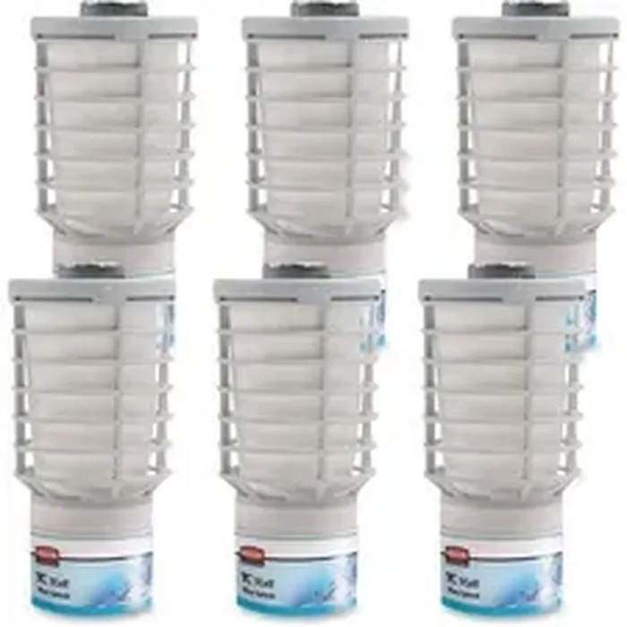 T-Cell air freshener refill is part of an odor-control system that dispenses a consistent level of fragrance and Microtrans odor neutralizer. Through a Rubbermaid T-Cell dispenser, the fresh fragrance and odor neutralizer are distributed throughout the room. Blue splash scent is hinged around bergamot, lemon, orange, lavender and rosemary, enhanced by a hint of mint and watery marine notes and supported by a base of lily, geranium, fern, amber and precious woods. Refill lasts approximately 60 days on the standard setting for a washroom with three to four stalls/fixtures. It can last approximately 90 days in a small washroom with one to two stalls/fixtures. Refill contains no propellants or added VOCs.
