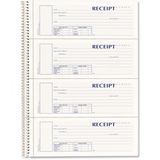 Use carbonless receipt book for either money or rent receipts. Cover has a gold foil-stamp and a linen-look. Coordinating gold twin-wire binding lets book lie flat or fold completely underneath. Extra-thick 80 point backer increases writing stability. Stop card protector prevents write-through. Receipt book offers two-part carbonless forms and four receipts per page. Receipt forms are consecutively numbered in red for quick reference. Security screen prevents alterations.