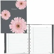 Quad notebook contains 192 microperforated pages, index sheet, self-adhesive tabs, storage pocket, twin-wire binding and hard cover. White paper has a margin and college-ruling on left side and quad-ruling on right side. Notebook contains post-consumer recycled material.