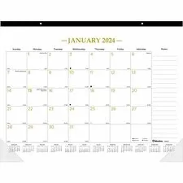 Blueline Classic Gold Monthly Desk Pad Calendar - Monthly - 12 Month - January 2024 - December 2024 - 1 Month Single Page Layout - 17" x 22" Sheet Size - Desk Pad - Clear, White - Chipboard, Vinyl - Dated Planning Page, Daily Block, Notes Section, Reference Calendar, Tear-off, Perforated, Reinforced, Writable Surface, Top Bound, Printed, Punched - 1 Each
