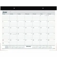 Marketing Information:Monthly Desk Pad Calendar features an elegant, Classic Gold design so you can plan in style. Dated planning pages range 12 months from January to December. One-page-per-month format includes numbered weeks, daily blocks, count of days/days remaining, large notes section and yearly reference calendar. Tear-off sheets are bound at the top and perforated for easy removal. Reinforced chipboard backer provides a reliable writing surface. Clear vinyl corners secure calendar sheets. Desk pad also includes two holes in the top binding so you have the option to hang it.
