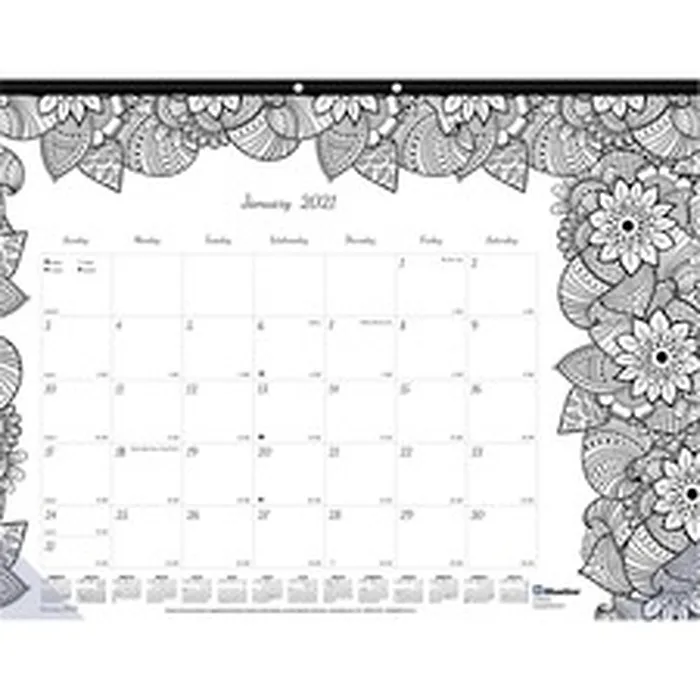 Monthly desk pad features a different Botanica design for each month so you can doodle on it while at your desk. Planning pages range 12 months from January to December and are bound at the top. Each tears off easily. One-page-per-month format features daily blocks, a notes section and full-year calendar reference on the bottom of each sheet. Desk pad has a reinforced chipboard backer, two eyelets for hanging and corners to secure the bottom edges.